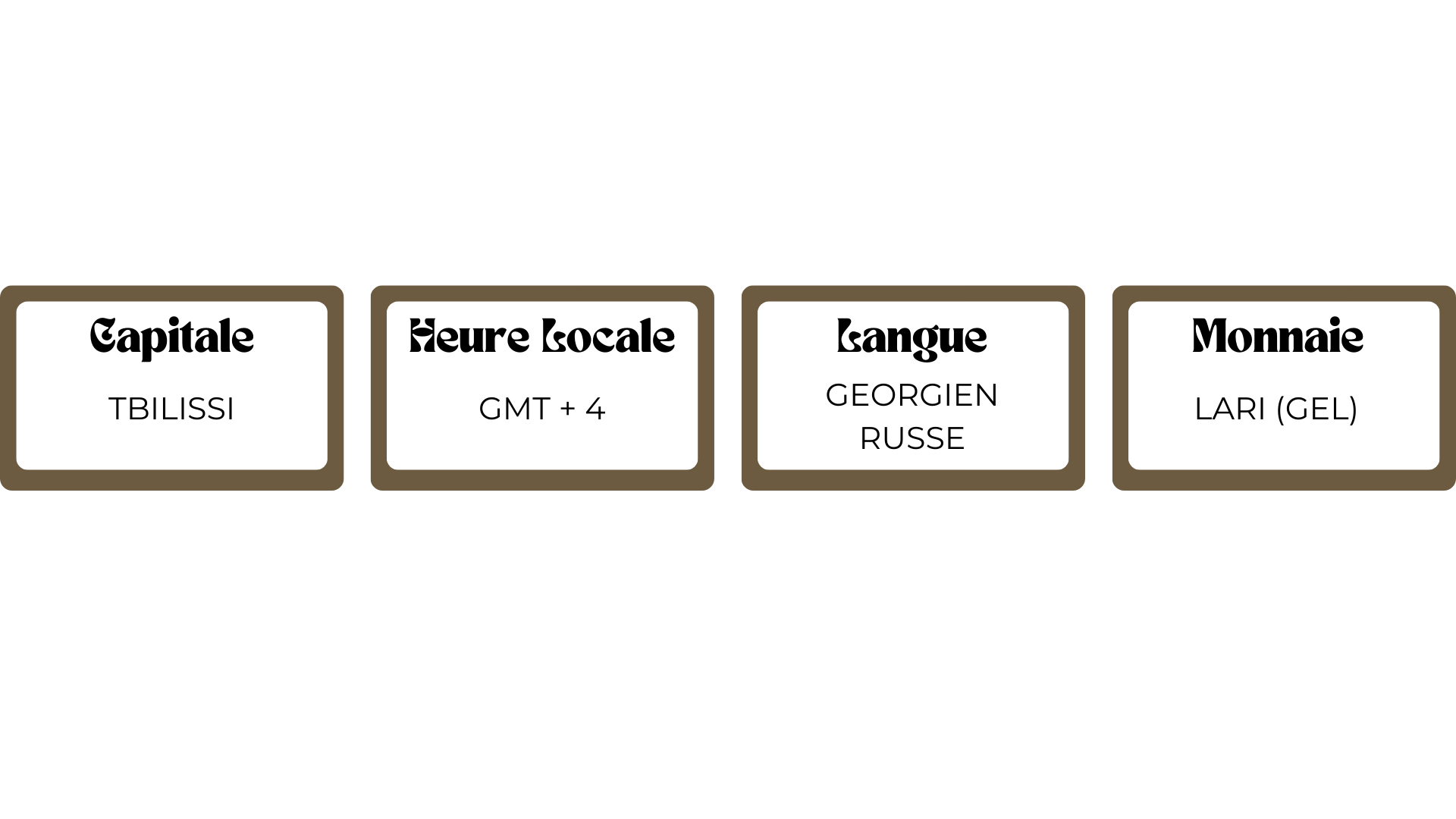 La Géorgie est un véritable carrefour culturel et un pays chargé d’histoire qui comprend actuellement plus d’une centaine de groupes ethnique. La langue est le géorgien, mais une partie de la population parle aussi russe. Le pays est très majoritairement orthodoxe avec une minorité musulmane. Il est nécessaire de se couvrir les épaules et les jambes pour visiter les très nombreux monastères orthodoxes. Les femmes doivent aussi se couvrir la tête à l’aide d’un foulard.